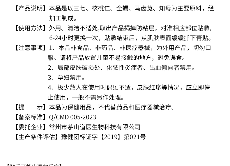 复原头舒保健贴